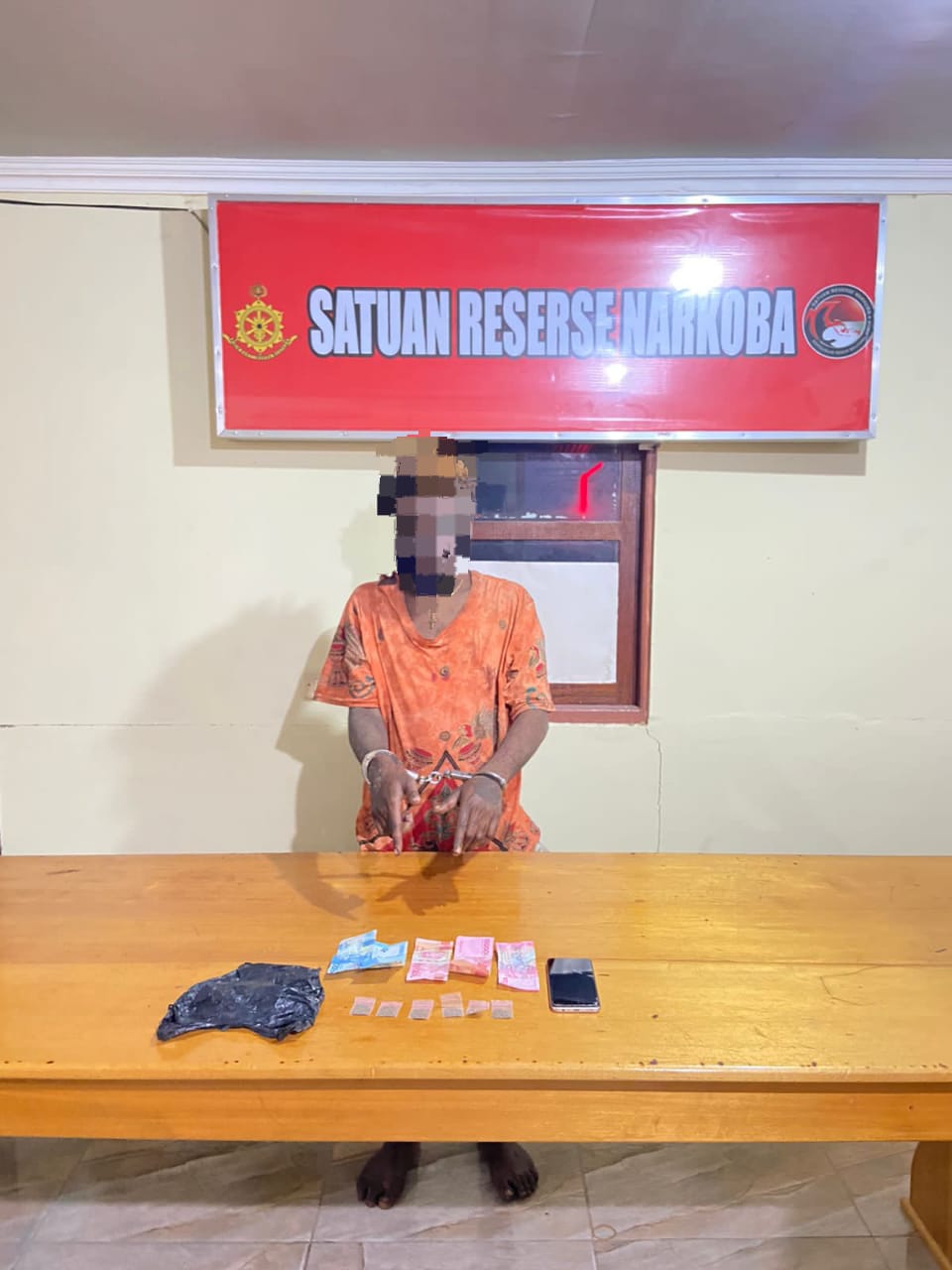 ” Saya didampingi Oleh Kanit Opsnal Satresnarkoba Polres Nabire tiba di TKP menemukan seorang pemuda yang sedang duduk, saat mau melakukan penangkapan terhadap seorang pemuda tersebut, pemuda itu melarikan diri tetapi berhasil ditangkap dan selanjutnya diamankan,” ucap Kasat.