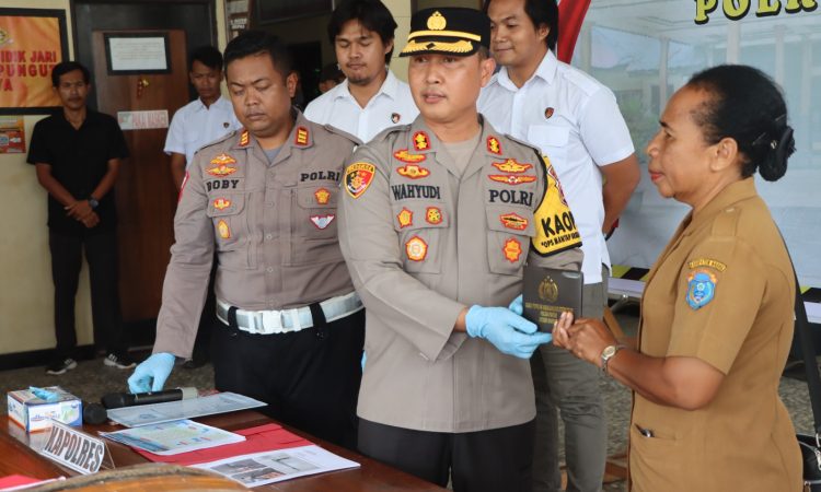 Nabire, Rabu (07/02/2024) ~ Polres Nabire melaksanakan Press Release pengungkapan kasus yang dipimpin langsung Kapolres Nabire AKBP Wahyudi Satriyo Bintoro, S.H., S.I.K., M.Si. di ruang tunggu sidik jari Satuan Reserse Kriminal Polres Nabire, Selasa (06/02/2024).