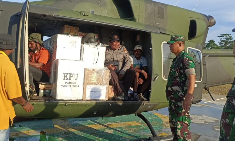 Timika – Pastikan pendistribusian logistik Pemilu 2024 lancar, Kasdim 1710/Mimika Mayor Inf Abdul Munir bersama pihak Kepolisian dan Pemda Mimika monitoring kegiatan pendistribusian Logistik Pemilu bertempat di Hanggar Penerbad, Distrik Kwamki Narama, Senin (12/02/2024).