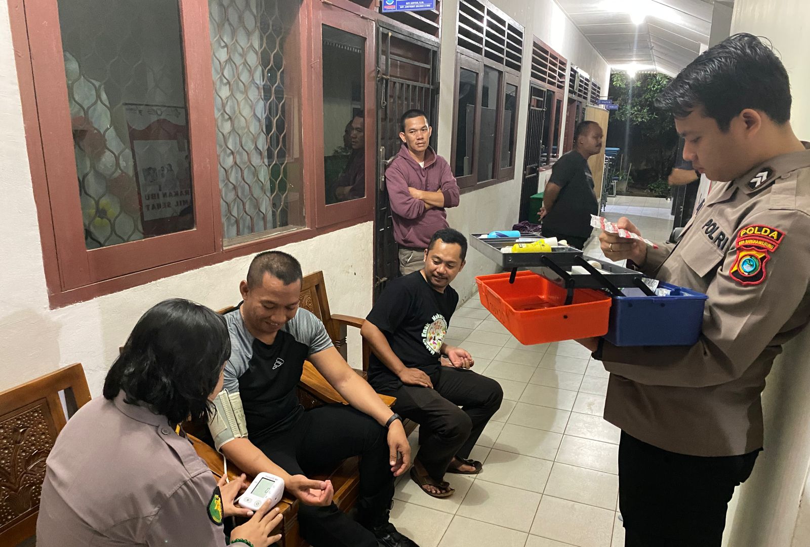 Pangkalpinang – Tim Petugas Kesehatan dari Bid Dokkes Polda Bangka Belitung melakukan pengecekan kesehatan keliling kesejumlah TPS hingga ke Kantor Kecamatan yang berada di Kota Pangkalpinang, Kamis (15/2/24).