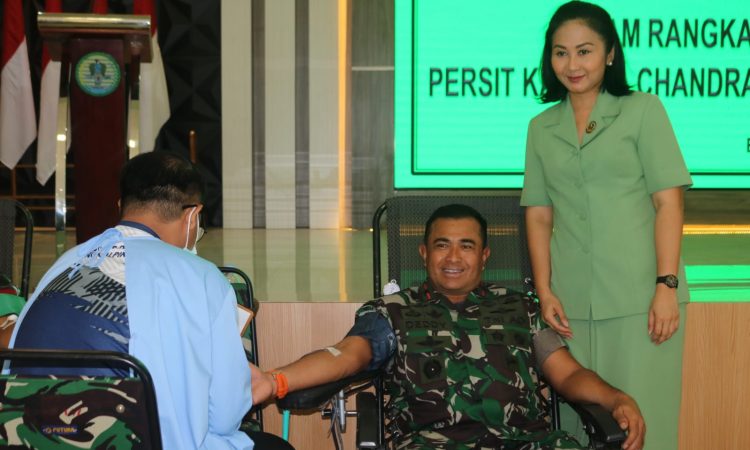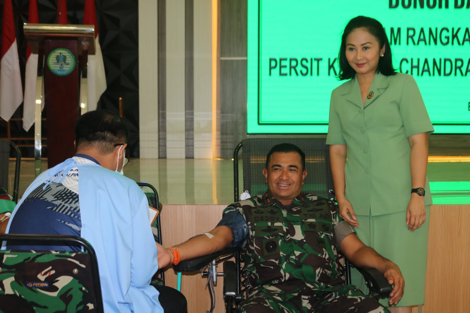 Posberitanasional.com, – Danrem 045/Gaya Brigjen TNI A.Dedy Prasetyo, S.I.P. beserta Istri selaku Ketua Persit KCK Koorcab Rem 045 PD ll/ Sriwijaya, ikut mendonorkan darahnya di Aula Makorem 045/Gaya, Jumat (23/02/2024)