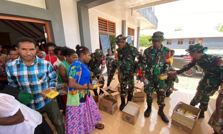 Dalam suasana kebersamaan dan kekeluargaan, para anggota Satgas TMMD ke-119 Kodim 1715/Yahukimo turun langsung ke lapangan untuk menyambut para warga yang keluar dari Gereja Maranatha setelah melaksanakan ibadah. Para anggota Satgas TMMD menyajikan makanan berupa nasi kotak dan makanan ringan sebagai bentuk kepedulian dan kebaikan kepada masyarakat setempat.