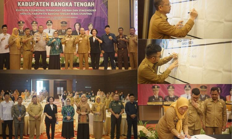PANGKALANBARU, POSBERNAS, – Langkah kongkret yang ditempuh Kabupaten Bangka Tengah dalam upaya pengentasan stunting semakin ditingkatkan. Sebagai penguatan komitmen, Tim Percepatan Penurunan Stunting (TPPS) Kabupaten Bangka Tengah mengajak para stakeholder bersama OPD dan Forkopimda menandatangani kesepakatan bersama di Soll Marina Hotel, Kecamatan Pangkalanbaru, Selasa (30/04/2024).