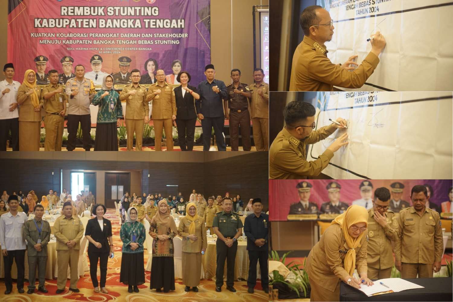 Hadir di agenda ini Wakil Bupati Bangka Tengah, Era Susanto yang juga selaku Ketua TPPS Bangka Tengah, menandatangani Berita Acara Rembuk Stunting. Dilanjutkan kemudian dengan bergiliran antara Forkopimda dan OPD menandatangani komitmen bersama.