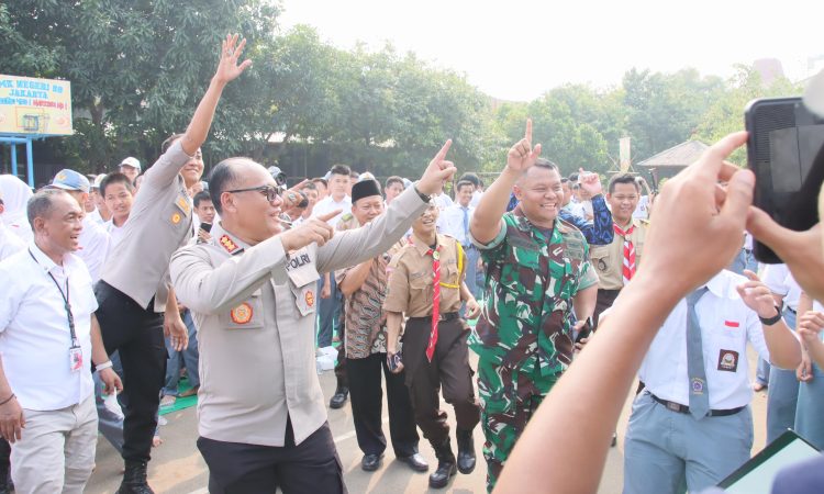 Jakarta – Polres Metro Jakarta Utara bersama Forum Koordinasi Pimpinan Kota (Forkopimko) Jakarta Utara menyambangi para siswa di SMKN 56, Penjaringan, Kamis (1/8/24).