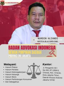 Ketua BAI DPD DKI Jakarta, Nurdin Aliandi di bawah kepemimpinan Bapak Nurdin Aliandi, BAI DPD DKI Jakarta terus berupaya mengedepankan keadilan dan perlindungan hukum bagi seluruh warga DKI Jakarta. Dengan pengalaman yang luas dan dedikasi yang tinggi, Bapak Nurdin memastikan setiap individu mendapatkan layanan hukum terbaik.