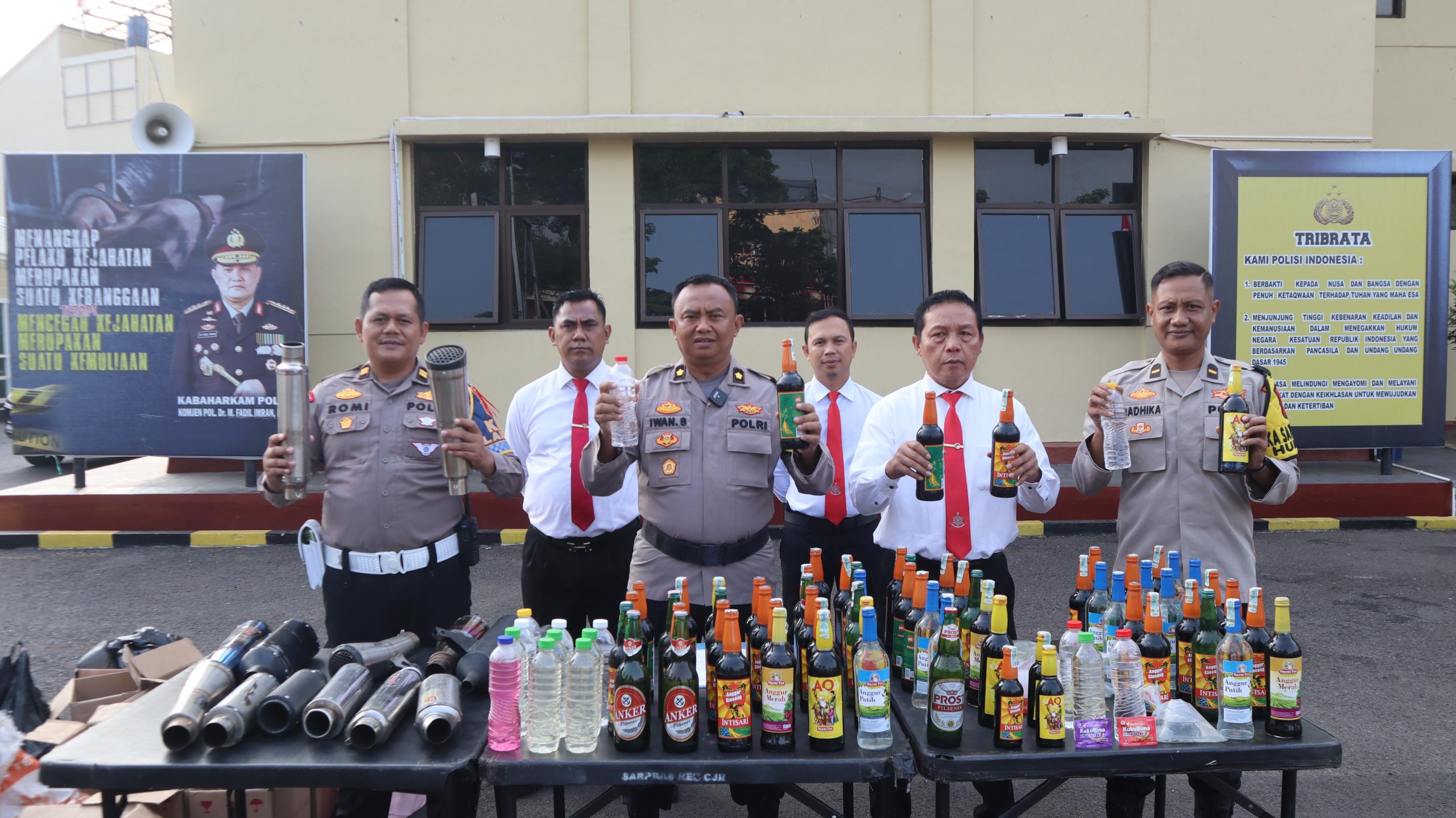 Selain itu, barang bukti minuman keras (miras) yang berhasil diamankan, Polres Cianjur berhasil mengamankan sebanyak 531 botol atau kantong dengan rincian 186 botol minuman keras berbagai merek dan 345 kantong minuman oplosan.