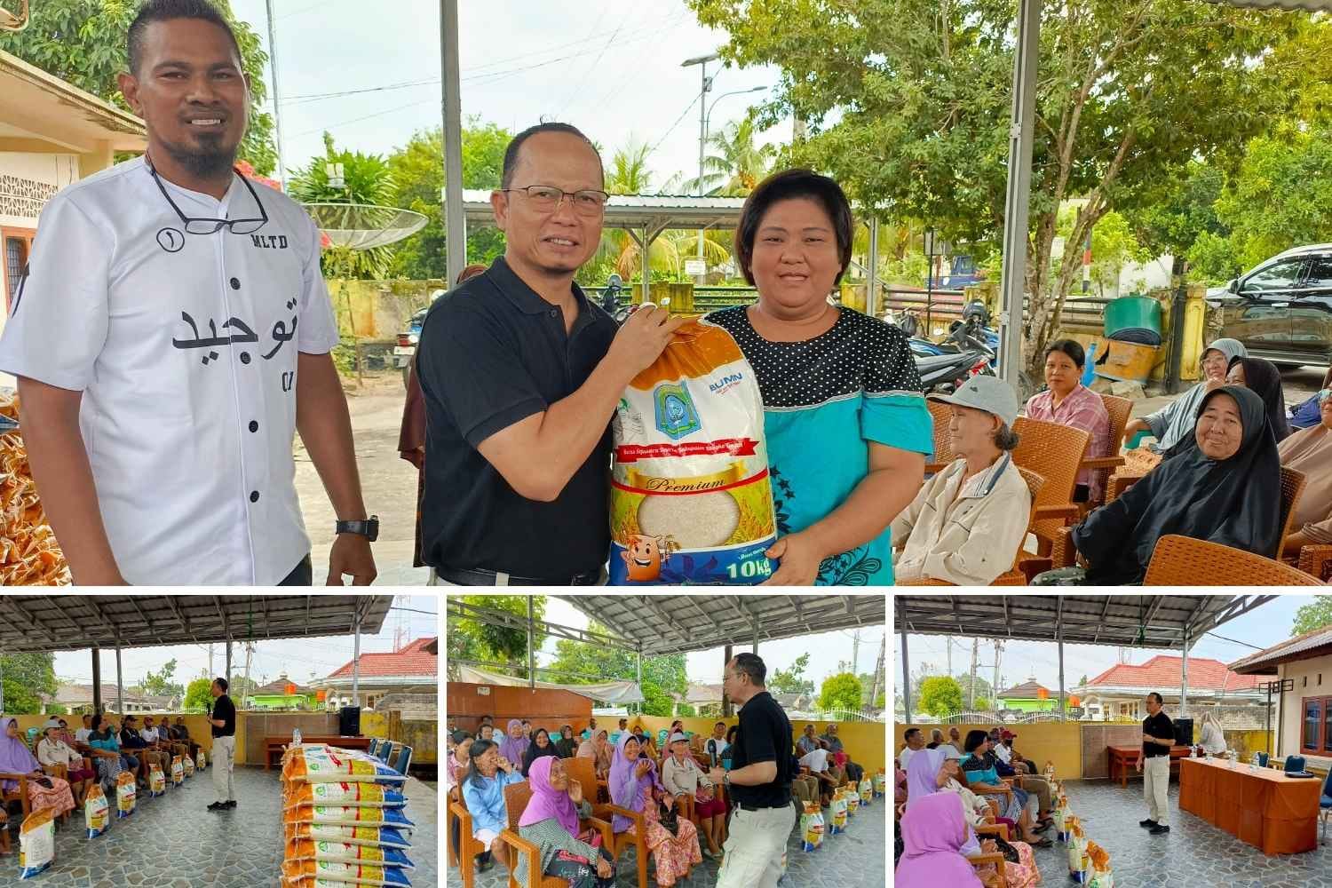 Bantuan diserahkan langsung secara simbolis kepada 51 Keluarga Penerima Manfaat (KPM) Kelurahan Koba dan 45 KPM Kelurahan Simpang Perlang berupa beras premium 10kg kepada masing-masing penerima.