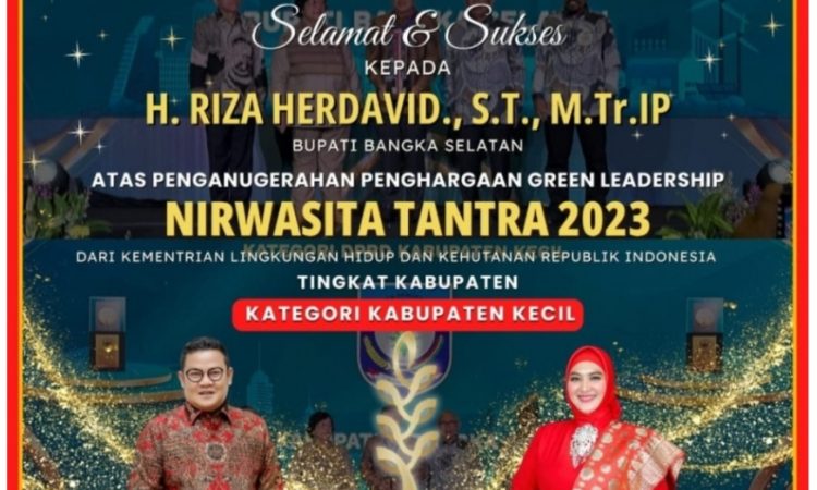 Selain Bupati Riza Herdavid, penghargaan Green Leadership juga diterima Ketua Dewan Perwakilan Rakyat Daerah (DPRD) Kabupaten Bangka Selatan Erwin Asmadi