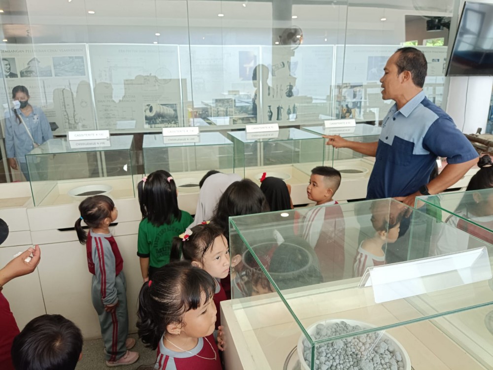 Seperti hari ini, pelajar dari TK Stannia berkunjung ke Museum Timah Indonesia Mentok didampingi guru dan orang tua untuk melihat berbagai koleksi museum pada Rabu (2/10/2024).