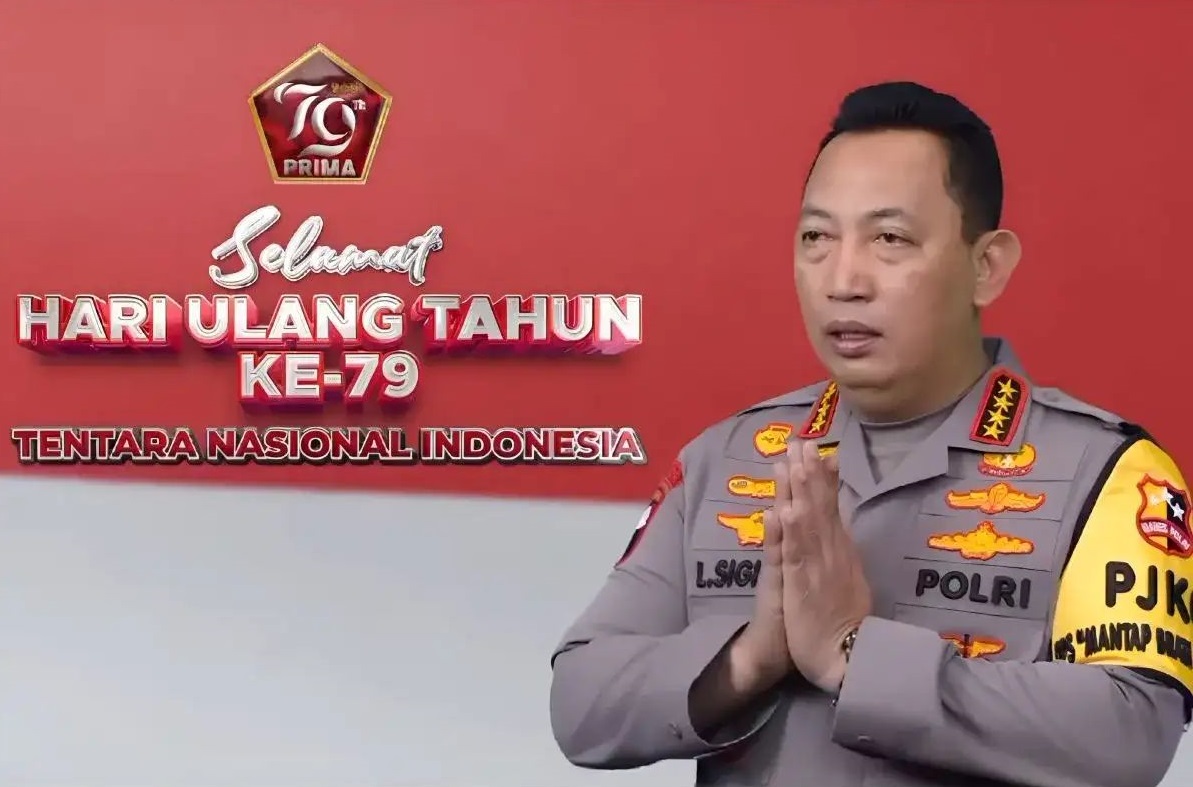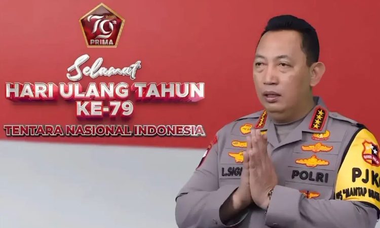 “Saya mengucapkan Selamat Hari Ulang Tahun ke-79 Tentara Nasional Indonesia.. TNI modern bersama rakyat, siap mengawal suksesi kepemimpinan nasional untuk Indonesia Maju. TNI Prima. Salam Presisi!!” ungkap Jenderal Sigit.