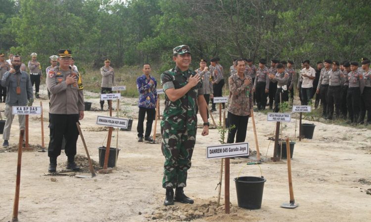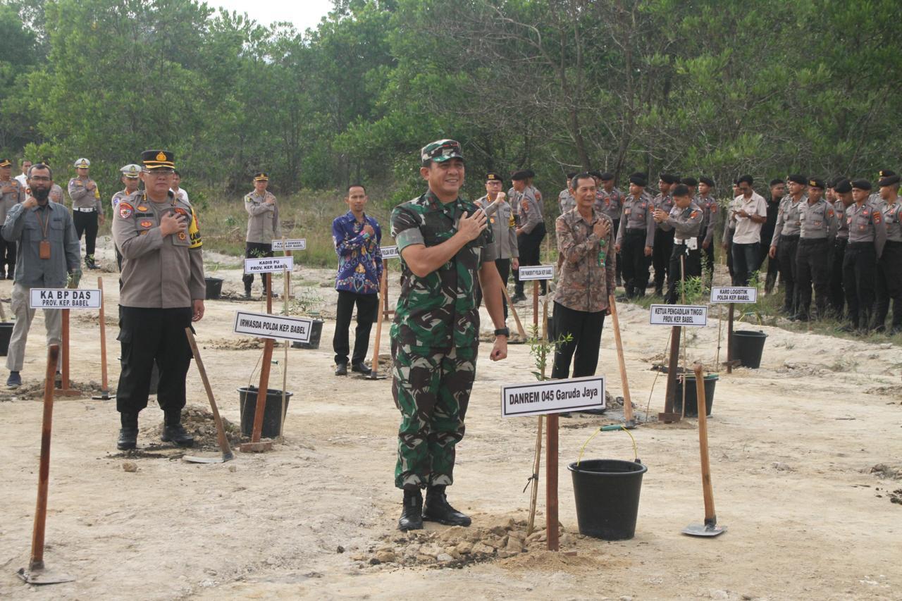 Pangkalanbaru, Posberitanasional.com, – Danrem 045/Gaya Brigjen TNI Safta Feryansyah ,S.E.,S.I.P.,M.Han., ikut serta Penanaman pohon secara serentak di jajaran Polda Kep. Bangka Belitung tempat di belakang GOR Sahabuddin, Kecamatan Pangkalanbaru Bangka Tengah, Kamis (17/10/2024).