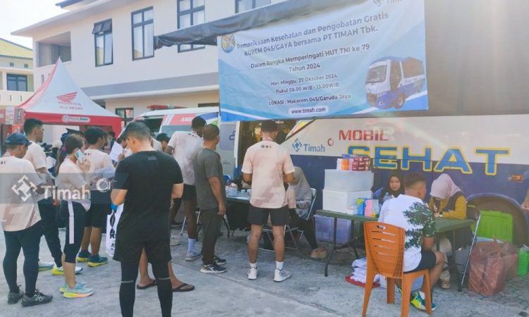 Posberitanasional, – Ratusan peserta TNI Babel Run memanfaatkan layanan kesehatan di Mobil Sehat PT Timah di Mako Korem 045/Gaya, pada Minggu (27/10/2024). Mobil Sehat PT Timah merupakan pelayanan kesehatan dari PT Timah untuk meningkatkan kualitas kesehatan masyarakat.