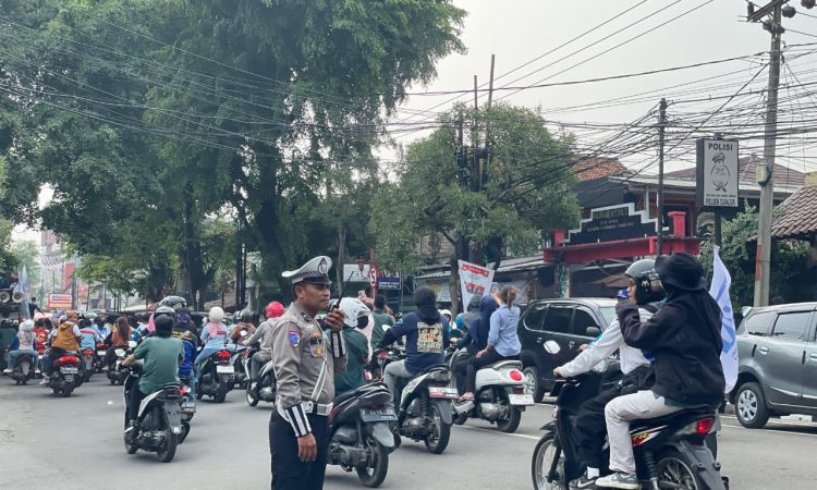 Polres Cianjur juga melakukan pengamanan jalur aksi unjuk rasa damai pada hari ini dengan melibatkan personel Satlantas.