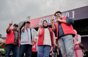 “Bapak – Bapak, Ibu – Ibu, mau BPJS gratis?. mau berobat gratis?..mau mudah mencari kerja?.. Kalau mau, pilih nomor 1, Kasmarni – Bagus Santoso,” ujar Kasmarni didampingi Bagus Santoso.