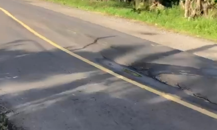 “Ini struktur jalan nya tu bergelombang, sangat signifikan jarak gelombang nya, jadi tidak rata, disini tempat lalu lalang truk sawit, sehingga ada beberapa truk sawit yang terbalik membawa muatan berat, itu terguling di sini, karna kontur jalan yang tidak rata,dengan muatan yang berat,” sebutnya lagi