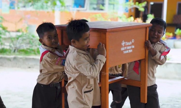 Akhir tahun lalu, anggota Holding Industri Pertambangan MIND ID ini menyerahkan bantuan meja dan kursi kepada SDN 21 Gantung, Kabupaten Belitung Timur.