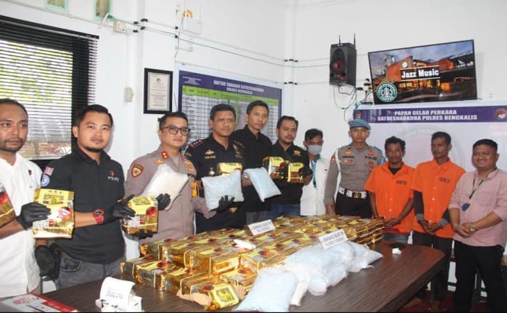 Pengungkapan itu Berhasilkan amankan barang bukti yang disita, antara lain 90 bungkus narkotika jenis sabu, 10 bungkus narkotika jenis pil ekstasi, dua unit handphone android, dan 1 unit speed boat beserta mesin 85 PK,” ujar Kapolres Bengkalis AKBP Budi Setiawan, Kamis (13/2).