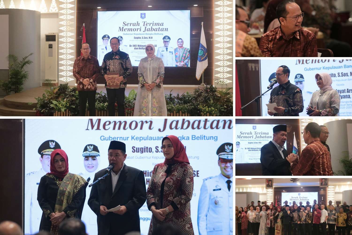Adapun memori jabatan tersebut diserahkan oleh Penjabat (Pj) Gubernur Periode Agustus 2024 – April 2025, Sugito, S.Sos., M.M. kepada Gubernur Kepulauan Bangka Belitung Periode 2025-2030, Dr. (HC) Hidayat Arsani, S.E. dan Wakil Gubernur, Ibu Hellyana, S.H.
