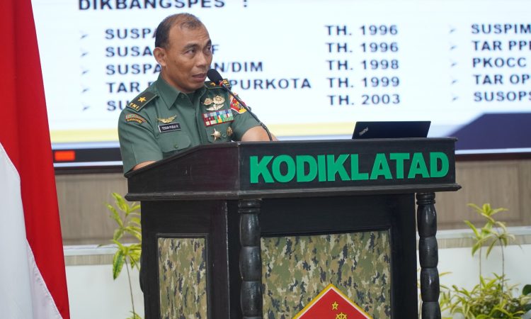 Bandung, Posbernas, – Komandan Kodiklatad Letjen TNI Mohamad Hasan diwakili Wadan Kodiklatad Mayjen TNI Izak Pangemanan, M.Tr.(Han) membuka bimbingan teknis (bimtek) bidang Doktrin TNI AD TA 2025 yang bertempat di Aula Mohammad Toha Kodiklatad, Rabu (11/06/2025)