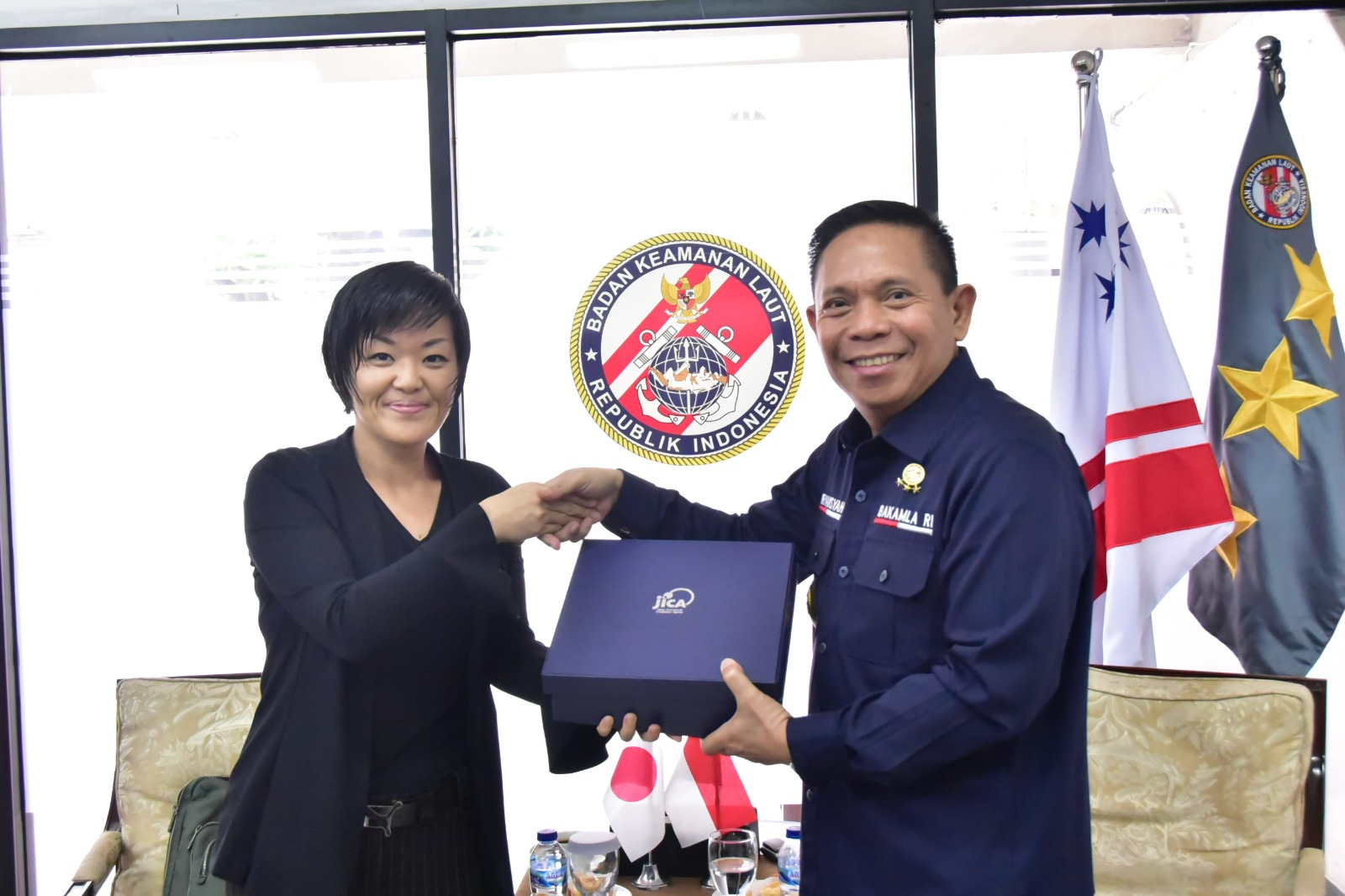 Jakarta, Posbernas, – Kepala Bakamla RI Laksdya TNI Dr. Irvansyah, S.H., M.Tr.Opsla., menerima Kunjungan Kerja atau Courtesy Call dari Director Infrastructure Management Department Japan International Cooperation Agency (JICA) Shimada Aya, beserta jajaran, di Kantor Bakamla RI Rawamangun, Jakarta Timur, Kemarin.