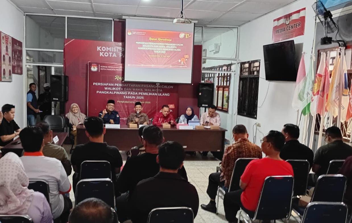 Pangkalpinang,Posbernas, – Pemerintah Kota Pangkalpinang menegaskan kesiapannya dalam mendukung penuh pelaksanaan Pemilihan Kepala Daerah (Pilkada) Ulang 2025. Hal ini disampaikan langsung oleh Asisten Pemerintahan dan Kesejahteraan Rakyat Sekretariat Daerah Kota Pangkalpinang, Akhmad Subekti, dalam rapat koordinasi persiapan pendaftaran pasangan calon Wali Kota dan Wakil Wali Kota di Kantor KPU Kota Pangkalpinang, Sabtu (21/6/2025).