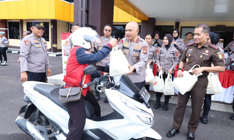 “Hari ini bersama Pak Kajati dan Pak Kasrem beserta Para Pejabat Utamanya, kita melaksanakan kegiatan pembagian tanda mata kepada masyarakat, helm, makanan dan dilanjutkan dengan silaturahmi di aula Tribrata Polda,”kata Hendro Pandowo usai kegiatan.