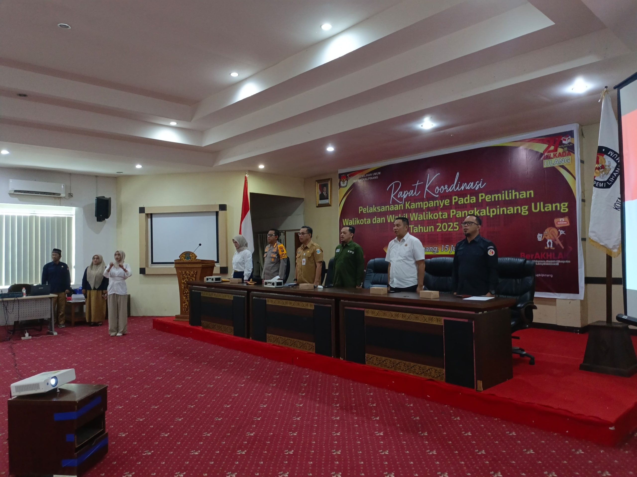PANGKALPINANG,POSBERNAS, -Menjelang pelaksanaan Pilkada Ulang Kota Pangkalpinang 2025, Komisi Pemilihan Umum (KPU) Kota Pangkalpinang menggelar Rapat Koordinasi (Rakor) pelaksanaan kampanye bersama Forkopimda dan stakeholder terkait, di Balai Besar Betason, Kantor Wali Kota, pada Selasa (15/7/2025).
