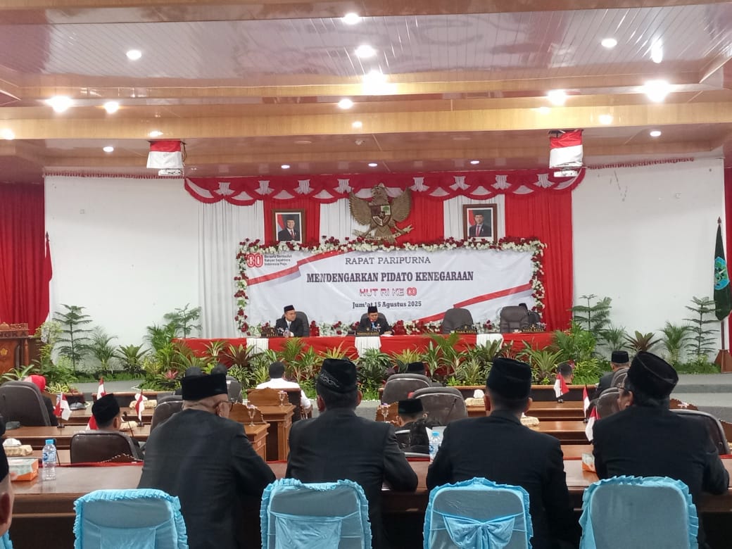 Mendengarkan Pidato Kenegaraan Hari Ulang Tahun Republik Indonesia yang ke 80 , rapat dipimpin oleh wakil ketua I DPRD Hendra Yunus,SE., Jum’at (15/08/2025)