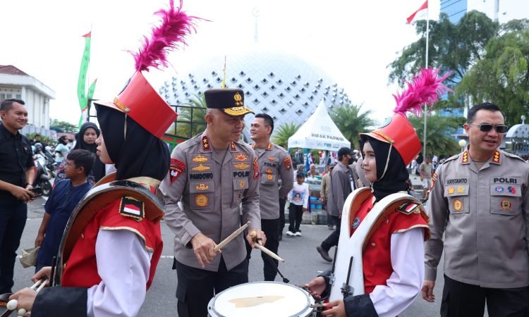 Sementara itu, dari pantauan dilokasi, Jenderal Bintang Dua Polri ini juga tampak menyempatkan turun langsung dari panggung kehormatan untuk memberikan semangat kepada para peserta parade karnaval.