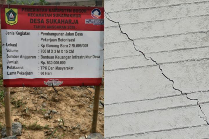 Seperti yang terjadi di desa Sukaharja kecamatan Sukamakmur kabupaten Bogor, pengerjaan pembuatan jalan di desa