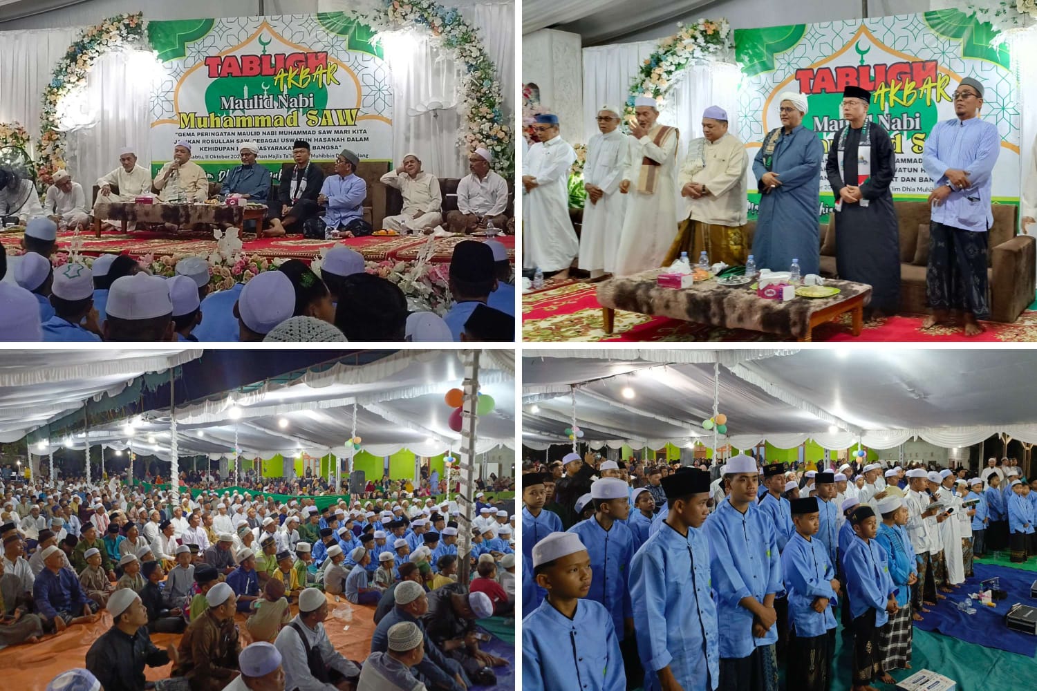 LUBUK BESAR,POSBERNAS – Masyarakat tampak begitu antusias ketika menghadiri tabligh akbar memperingati Maulid Nabi Muhammad Saw. yang dilaksanakan di halaman Majelis Taklim Dhia Ul Muhibbin Desa Perlang, dengan mengusung Tema “Gema Peringatan Maulid Nabi Muhammad Saw. Mari Kita Jadikan Rasulullah Saw. sebagai Uswatun Hasanah dalam Kehidupan Kita”, acara ini digelar pada Sabtu (11/10/2025) malam.