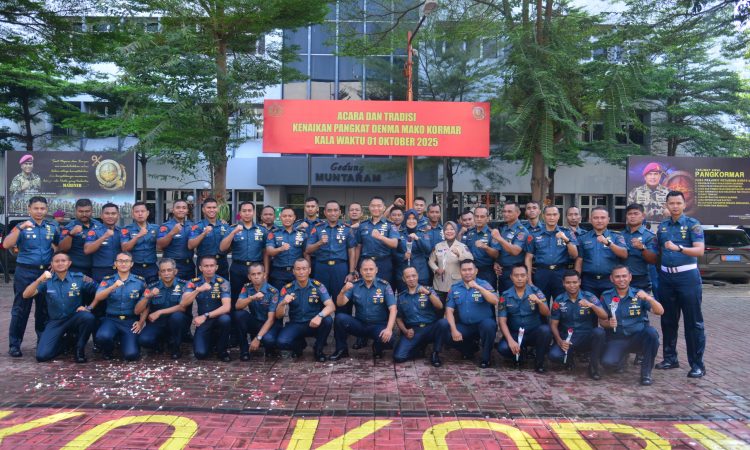Jakarta, Posbernas – Markas Komando Korps Marinir (Mako Kormar) menggelar upacara tradisi kenaikan pangkat bagi prajurit dan PNS periode 01 Oktober 2025, bertempat di Lapangan Apel Barungu Mako Kormar, Kwitang, Jakarta Pusat.