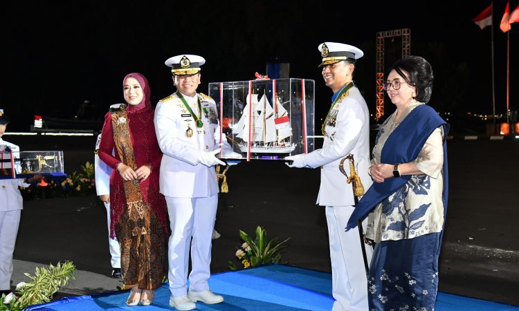 Surabaya,Posbernas – Panglima Korps Marinir (Pangkorps Marinir) Letnan Jenderal TNI (Mar) Dr. Endi Supardi, S.E., M.M., M.Tr.Opsla., CHRMP., CRMP. Didampingi Ketua Gabungan Jalasenastri Korps Marinir Ny. Nana Endi Supardi menghadiri Upacara Wisuda Purna Wira (WPW) Perwira Tinggi (Pati) TNI AL Tahun 2025, yang digelar di Lapangan Laut Arafuru, Akademi Angkatan Laut (AAL) Bumi Moro, Surabaya, pada Sabtu malam (11/10/2025).