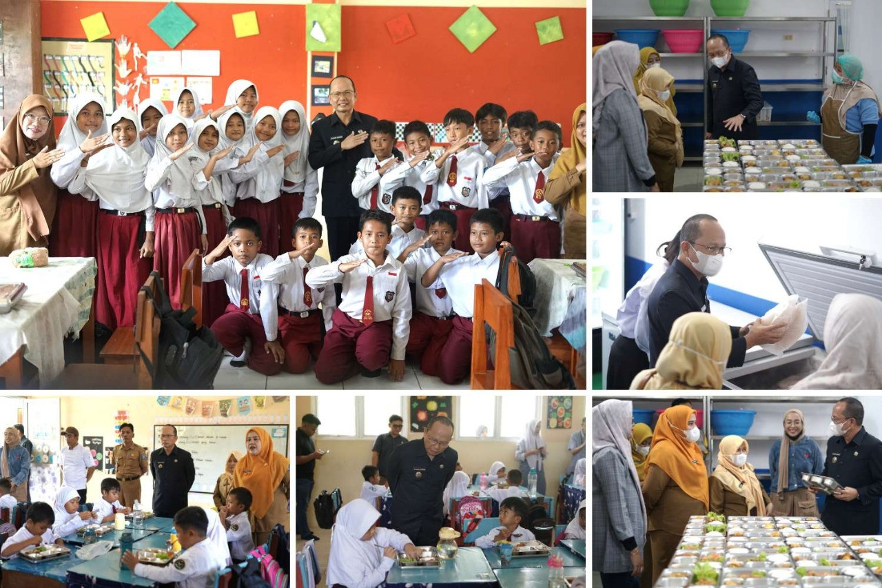 Setelah meninjau dapur, rombongan melanjutkan kunjungan ke SDN 5 Koba untuk menyaksikan proses distribusi makanan bergizi bagi siswa-siswi di sekolah tersebut.