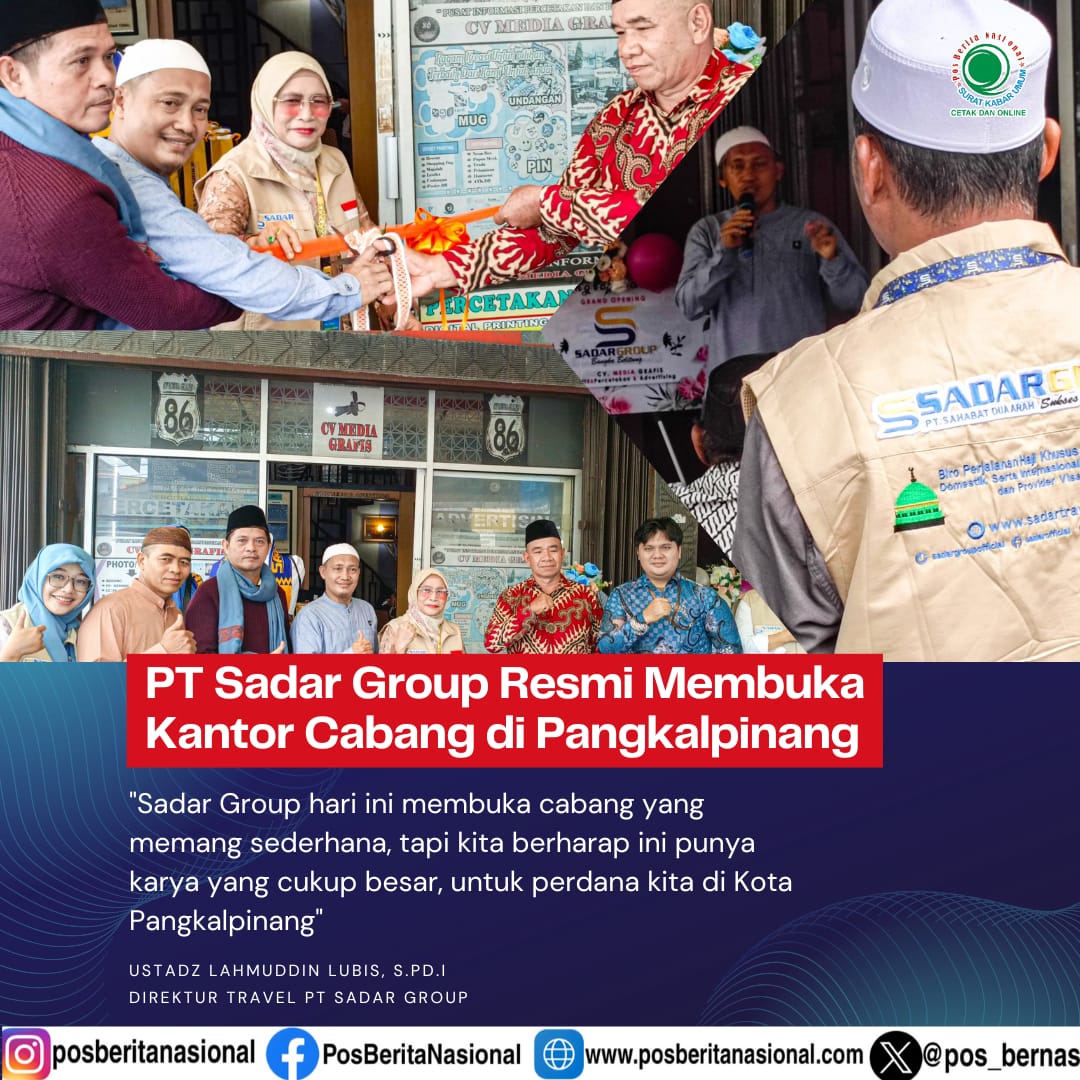 PANGKALPINANG,POSBERNAS — PT Sahabat Dua Arah (Sadar Group Travel) resmi membuka kantor cabangnya di Kota Pangkalpinang, Provinsi Kepulauan Bangka Belitung. Kantor cabang ini yang berlokasi di Jalan Re Martadinata, Kelurahan Opas Indah, Kecamatan Taman Sari, ini menjadi langkah penting perusahaan dalam memperluas jangkauan layanan perjalanan umrah, haji, dan wisata halal di wilayah Sumatera bagian selatan.