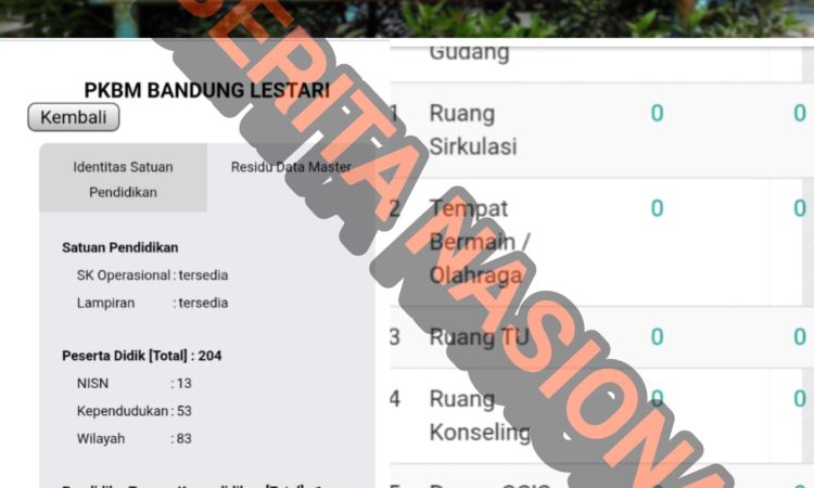 Dugaan pun semakin kuat,PKBM Bandung Lestari lakukan manipulasi data dapodik yang dimana di data dapodik PKBM Bandung Lestari Memiliki 7 ruang bangunan atau gedung, 204 Peserta didik.