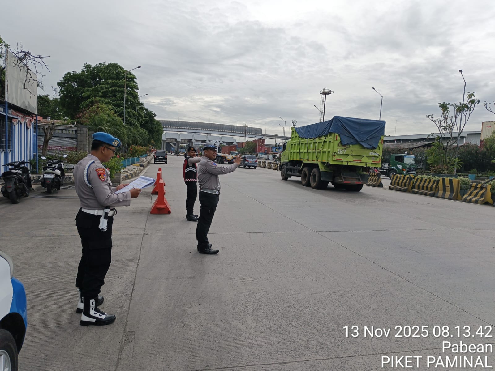 Kapolres Pelabuhan Tanjung Priok, AKBP Dr. Martuasah H. Tobing, S.I.K., M.H., bersama Kasipropam IPTU S. Sukoco, S.H., memimpin langsung pengaturan lalu lintas serta memastikan kesiapan dan kehadiran personel pada setiap titik pengaturan.