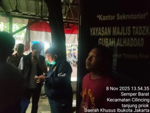 Jakarta Utara – Pamapta Polres Pelabuhan Tanjung Priok yang dipimpin Ipda Adi Tanjung, S.H., M.H., bersama Piket Fungsi, bergerak cepat menindaklanjuti aduan masyarakat melalui layanan Call Center 110 terkait dugaan kebakaran akibat korsleting listrik di Kantor Sekretariat Yayasan Majlis Tadzikir Gubah Alhaddad, kawasan Makam Mbah Priok, Koja, (8/11).