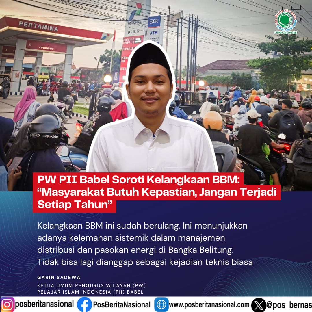 Ketua Umum Pengurus Wilayah (PW) Pelajar Islam Indonesia (PII) Babel, Garin Sadewa, menegaskan bahwa kelangkaan BBM bukanlah persoalan biasa. Ia menilai dampaknya sangat luas, tidak hanya pada aktivitas harian warga, tetapi juga pada sektor-sektor strategis, khususnya di daerah kepulauan.