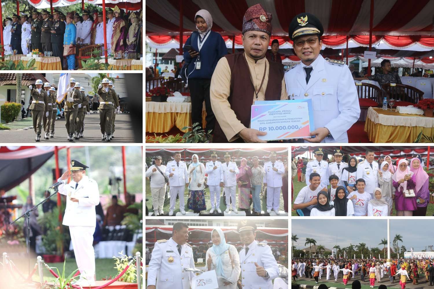 Sementara itu, Bupati Bangka Tengah, Algafry Rahman menyampaikan rasa syukur dan kebanggaannya atas peringatan hari jadi ke-25 Provinsi Kepulauan Bangka Belitung. Ia menegaskan bahwa momentum ini harus menjadi pengingat untuk terus memperkuat kebersamaan dalam membangun daerah.