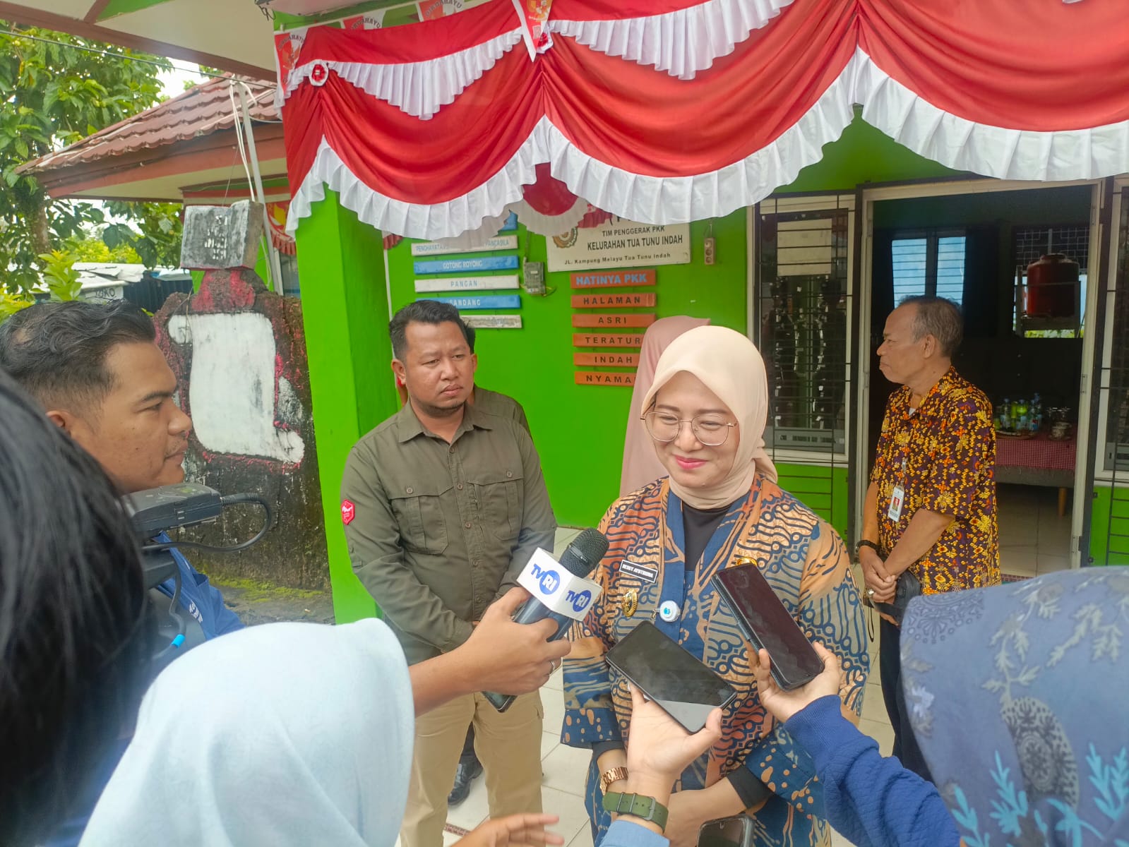 PANGKALPINANG,POSBERNAS – Wakil Wali Kota Pangkalpinang, Dessy Ayutrisna memberikan penyaluran bantuan pangan Pemerintah Pusat Bulan Oktober dan November Kota Pangkalpinang untuk masyarakat Tua Tunu di Kantor Kelurahan Tua Tunu Indah, Kamis (27/11/2025).