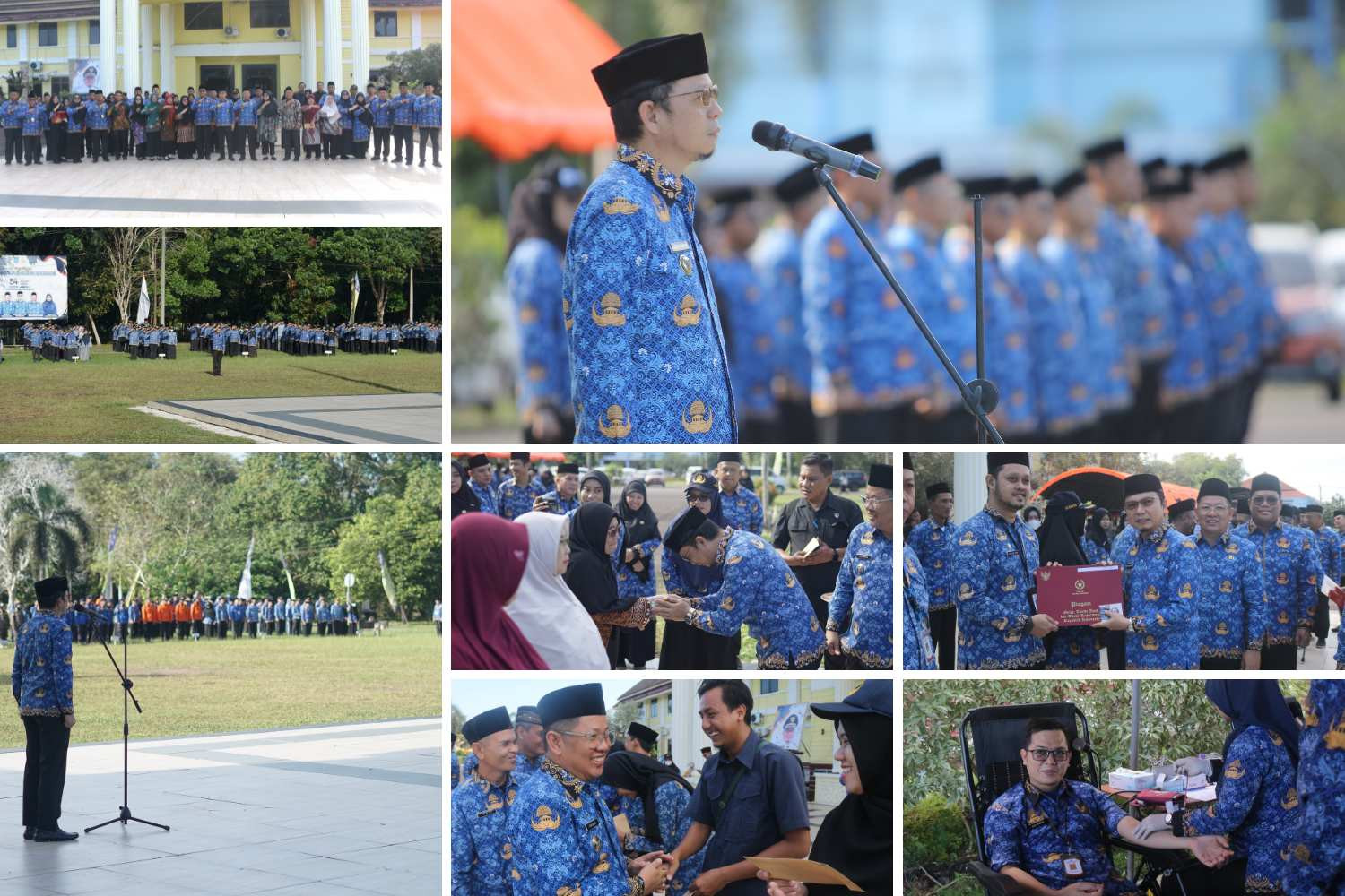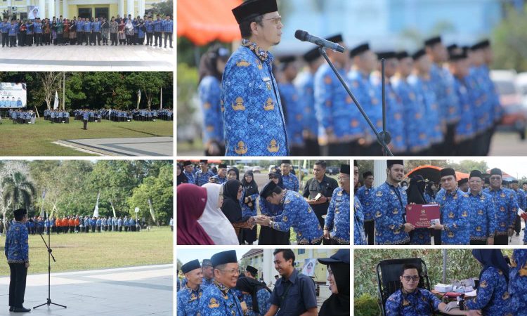 “Alhamdulillah, kita sudah melaksanakan upacara HUT ke-54 Korpri. Saya sangat senang, dan hari ini kita juga menyerahkan penghargaan kepada ASN yang telah mengabdi 10 hingga 30 tahun kepada bangsa dan negara,” ujarnya.