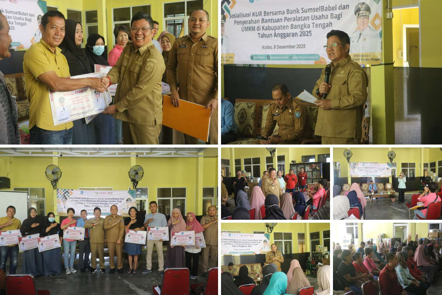 KOBA,POSBERNAS – Pemerintah Kabupaten Bangka Tengah (Pemkab Bateng) melalui Dinas Perindustrian, Perdagangan, Koperasi, dan Usaha Kecil dan Menengah (Disperindagkop-UKM) Bangka Tengah menggelar Sosialisasi KUR (Kredit Usaha Rakyat) bersama Bank Sumsel Babel sekaligus menyerahkan bantuan peralatan usaha bagi UMKM di Kabupaten Bangka Tengah Tahun Anggaran 2025. Kegiatan berlangsung di Kantor Disperindagkop-UKM Bateng, Senin (08/12/2025).