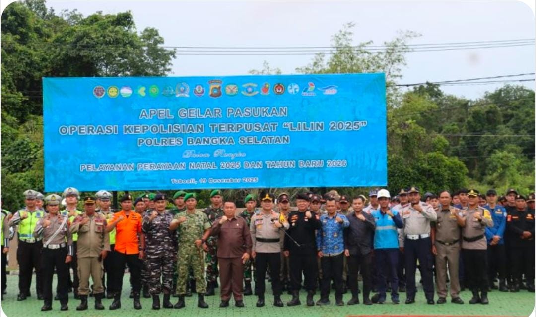 TOBOALI,POSBERNAS – Bukti sinergi dan soliditas antar lembaga instansi pemerintah TNI/POLRI dan elemen masyarakat, Ketua Senkom Bangka Selatan (Muslim) beserta Anggotanya, menghadiri Apel gabungan operasi lilin 2025 dan Nataru, bertempat di halaman Mapolres Bangka Selatan, Jumat (19/12/25)