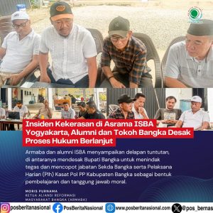 Pangkalpinang,Posbernas – Insiden dugaan penganiayaan terhadap seorang mahasiswa di Asrama ISBA Yogyakarta yang diduga dilakukan oleh oknum pejabat Pemerintah Kabupaten (Pemkab) Bangka memicu gelombang kecaman keras dari alumni, tokoh masyarakat, hingga keluarga korban. Kasus ini dinilai mencederai nilai kemanusiaan, dunia pendidikan, serta mencoreng nama baik Bangka Belitung di perantauan.