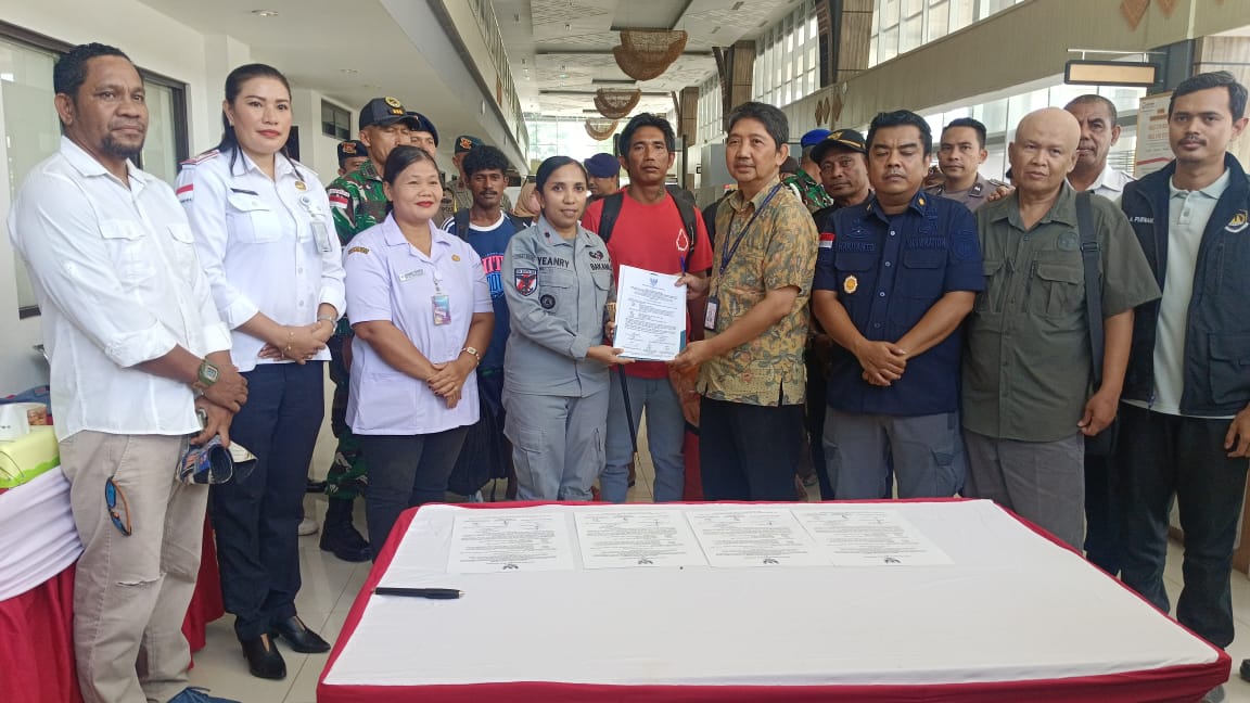 Kepala Stasiun Bakamla Kupang Mayor Bakamla Yeanry M. Olang, S.Kom., M.M., secara resmi menerima keenam ABK dari KBRI Dili melalui penandatanganan Berita Acara Serah Terima. Kegiatan tersebut disaksikan oleh Kepala PLBN Motaain Atambua, perwakilan Dinas Kelautan dan Perikanan Provinsi NTT wilayah Kabupaten TTS, TTU, Belu dan Malaka, serta unsur Imigrasi dan instansi terkait lainnya.