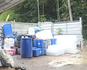 Di lokasi tersebut terlihat jejeran jerigen dan karung yang diduga berisi bahan baku maupun limbah produksi disimpan di area halaman terbuka tanpa adanya ruangan khusus atau sistem pengamanan (safety storage) sebagaimana diwajibkan dalam regulasi pengelolaan B3. Kondisi ini dinilai berpotensi membahayakan lingkungan sekitar serta kesehatan masyarakat dan pekerja.