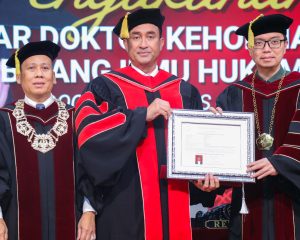 Penganugerahan gelar tersebut merupakan bentuk penghargaan akademik tertinggi atas kontribusi, pemikiran, dan pengabdian yang konsisten dalam pengembangan dan penegakan hukum, khususnya melalui penguatan kebijakan nasional serta praktik hukum yang berkeadilan dalam upaya Pencegahan dan Pemberantasan Penyalahgunaan dan Peredaran Gelap Narkotika (P4GN).