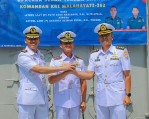 POSBERNAS – Serah Terima Jabatan Komandan KRI Malahayati-362 dilaksanakan di Geladak Tengah kapal dengan khidmat dan penuh semangat. Jabatan Komandan diserahkan dari Letkol Laut (P) Putu Agus Harianto, S.H., M.Tr.Opsla. kepada Letkol Laut (P) Zakaria Alimur Rijal, S.H., PGDSDS dalam sebuah upacara yang dipimpin oleh Komandan Satuan Kapal Eskorta Koarmada I, Kolonel Laut (P) Dodi Hermanto, M.Tr.Hanla., selaku Inspektur Upacara di PT.PAL Surabaya pada Jumat 20 Februari 2026 Kegiatan ini menjadi bagian dari dinamika pembinaan organisasi serta penyegaran kepemimpinan di lingkungan Koarmada I.